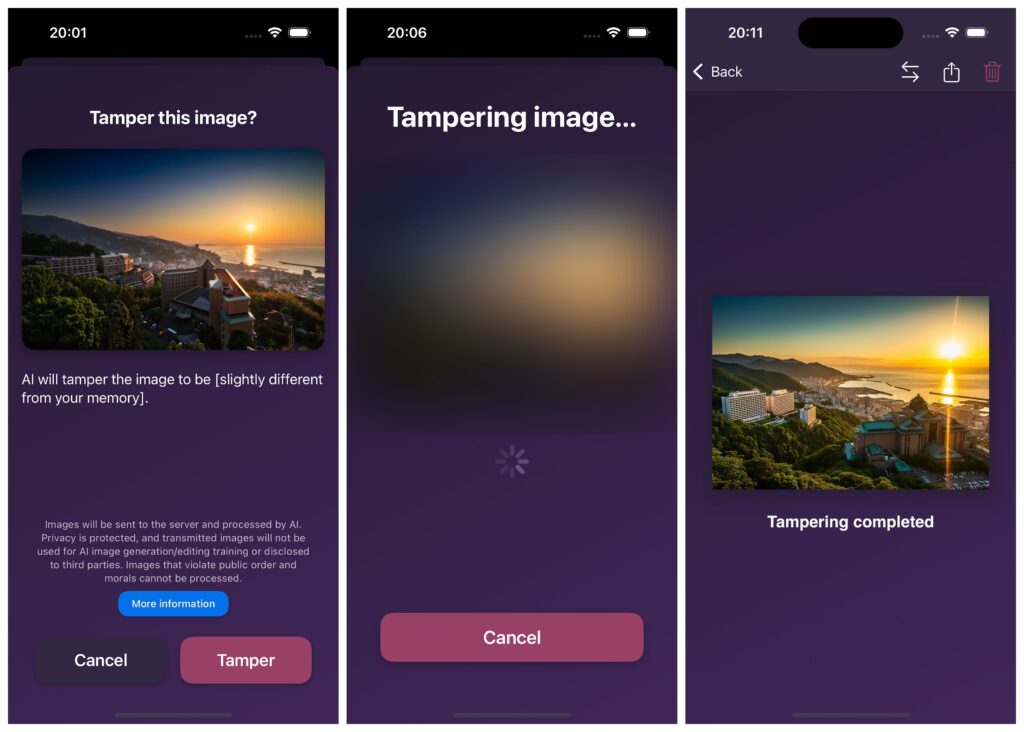 Tampera is a joke app that uses AI to add a touch of humor to your photos. It subtly manipulates your images while preserving the original mood, as if your old memories have been beautifully, or comically, rewritten.